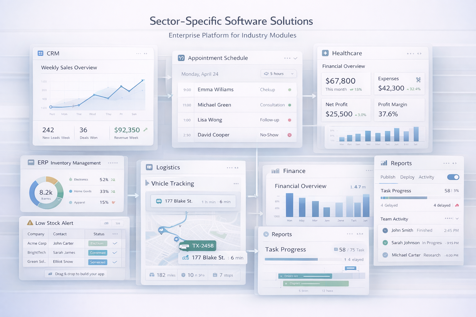 We develop industry-focused web and mobile applications. Each solution includes development, deployment, and application-specific training.